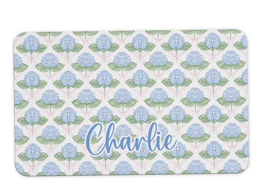 Name Desk Pad, Personalized Mouse Pad, Blue Hydrangea, Pink Bow Coquette Desk Office Decor, Large Desk Blotter, Mousepad, Office Gifts